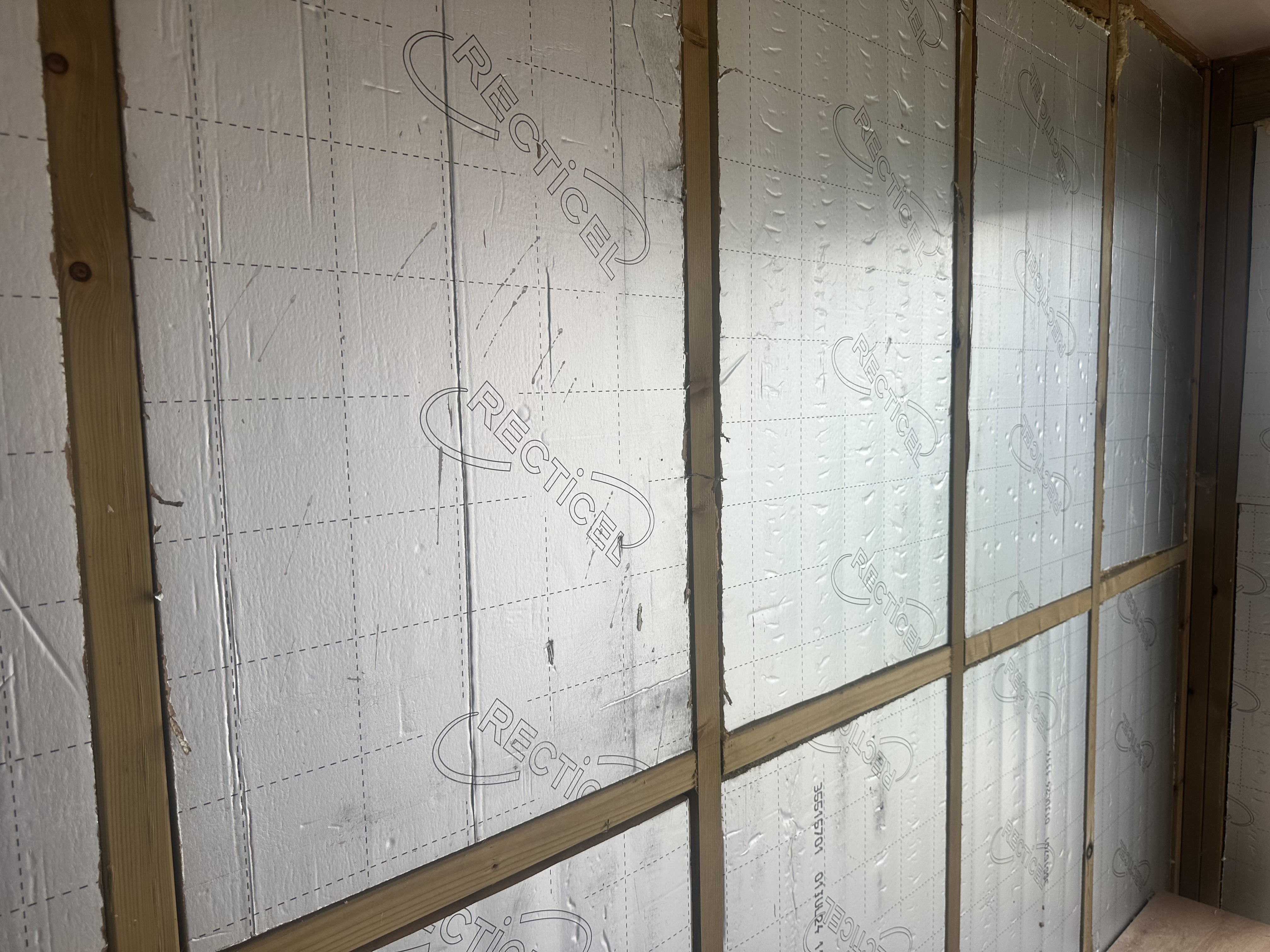 Fit a vapour barrier or damp-proof membrane inside the walls to prevent moisture issues.